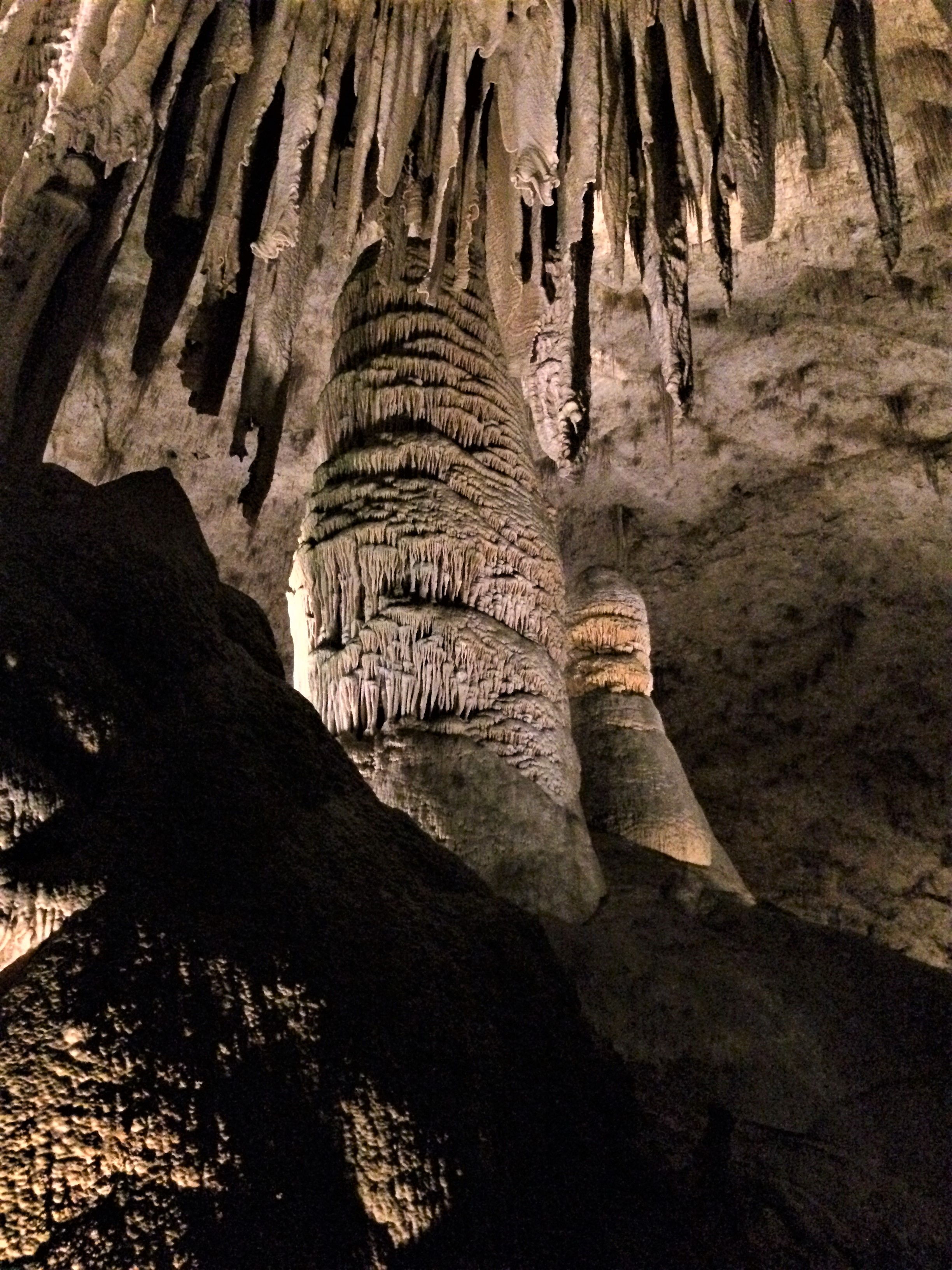 Once you circle the ‘Big Room’, the path brings you to ‘Top of the Cross’, where two passages meet and the ceiling soars 225 feet. Further, the ‘Bottomless Pit’, yawns open and black. Once thought to be a thousand feet deep, it has since been measured at a depth of 140 feet. I felt this should have prompted a name change, but I was not consulted. Around a corner, just when you think you’ve seen everything the caverns have to offer, ‘Crystal Spring Dome’, the cave’s largest active stalagmite stands directly in front of you. Well hello. At this point my mind is numb. I should have taken the elevator, watched a cartoon and ventured back down. It is simply so much to take in all at once. Finally I begin to hear other people muttering. Apparently I am an early adapter.