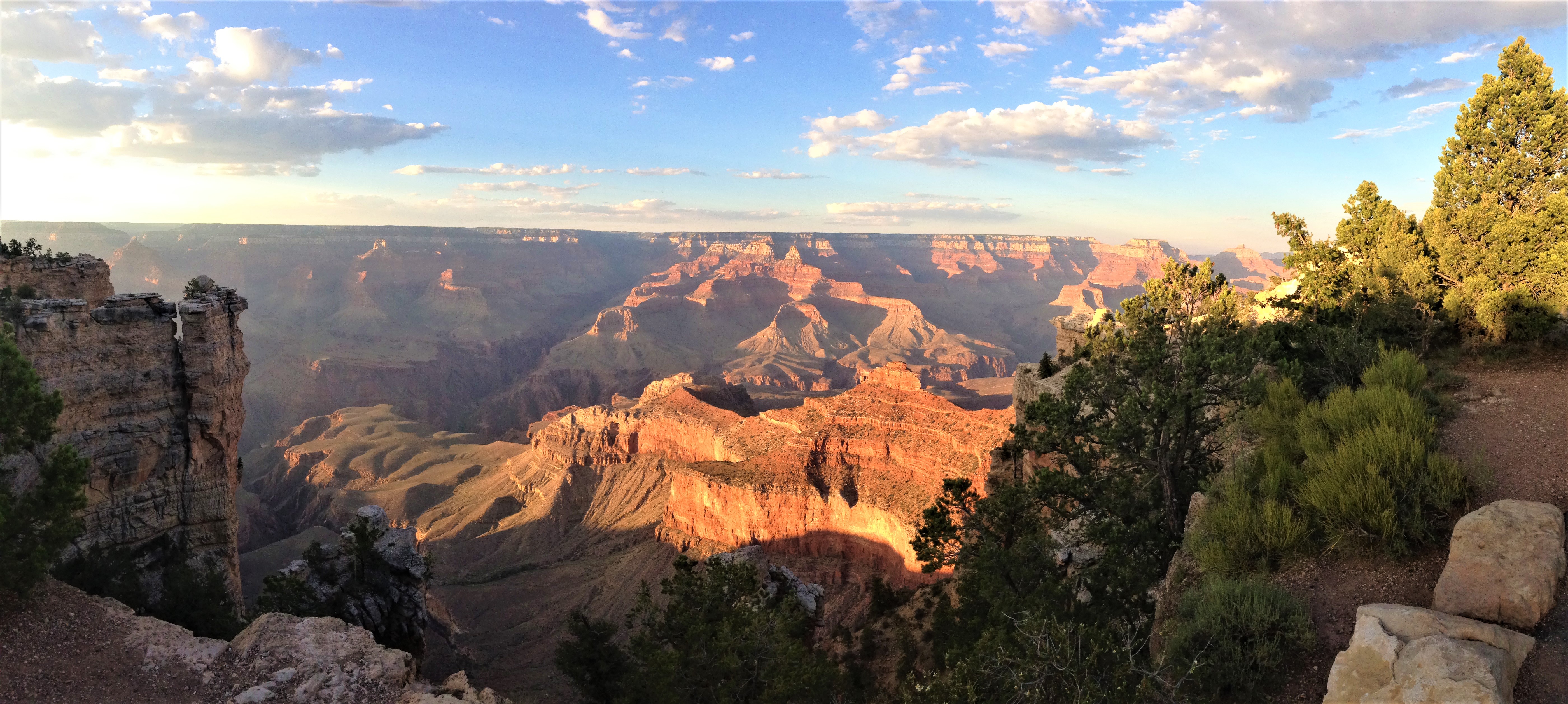 Having stopped at several spots along the way, including Hoover Dam and Lake Powell, I was losing daylight. Mather Point is the first overlook along the south rim, so I pulled in and half ran, half skipped to the path leading to the edge. Several people were standing around, getting a final glimpse of the canyon before darkness swallowed her. I stood in silence, absorbing the majesty of color and scale, my heart leaping in my chest.